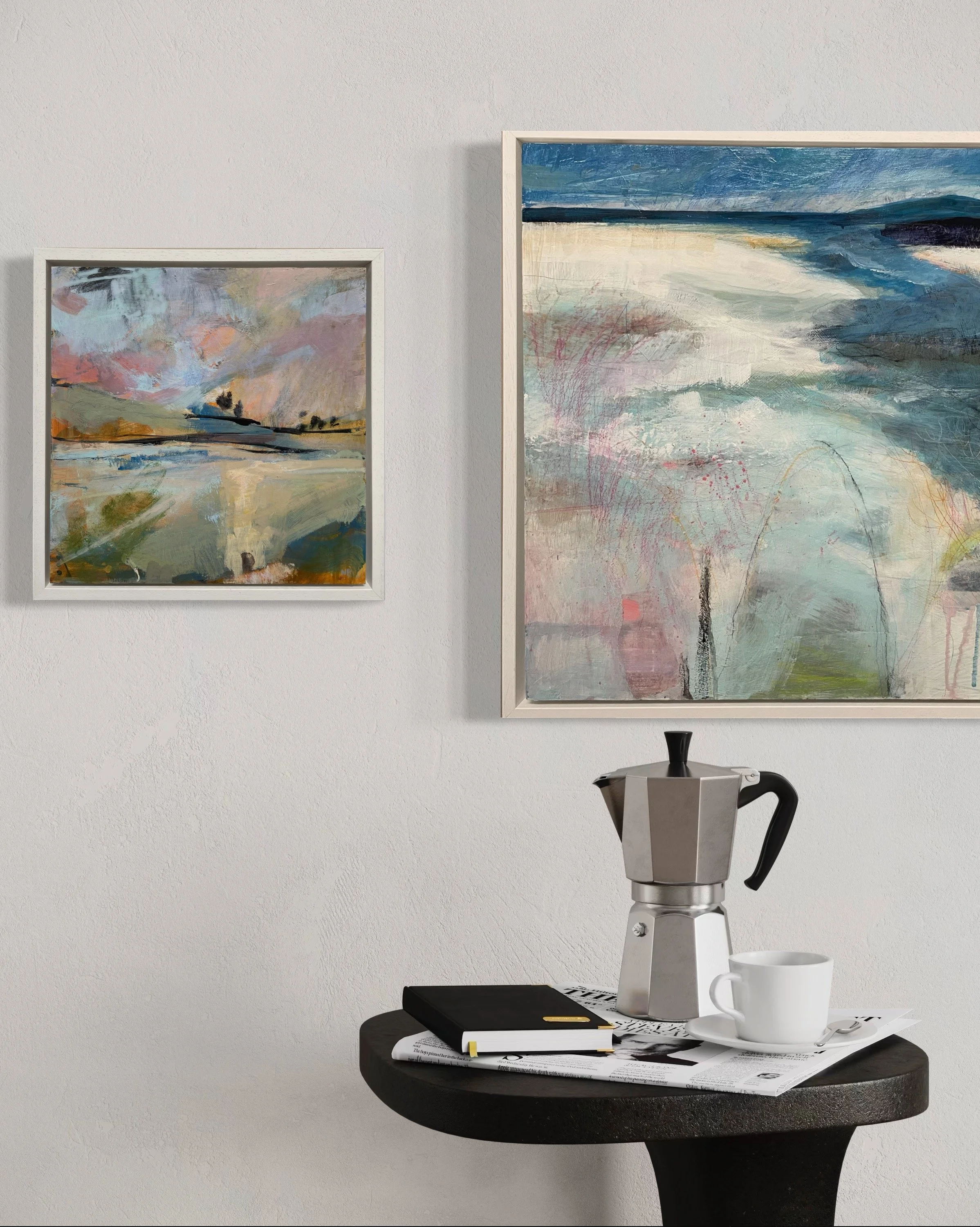 Elements of abstraction › Ebb Tide Image 1 of 3 Image 2 of 3 Image 3 of 3 Ebb Tide £300.00 50×50 cm mixed media on cradled wooden panel, ready to hang.Also available framed for £350.00 Reserve Added! 50×50 cm mixed media on cradled wooden panel, ready to hang.Also available framed for £350.00