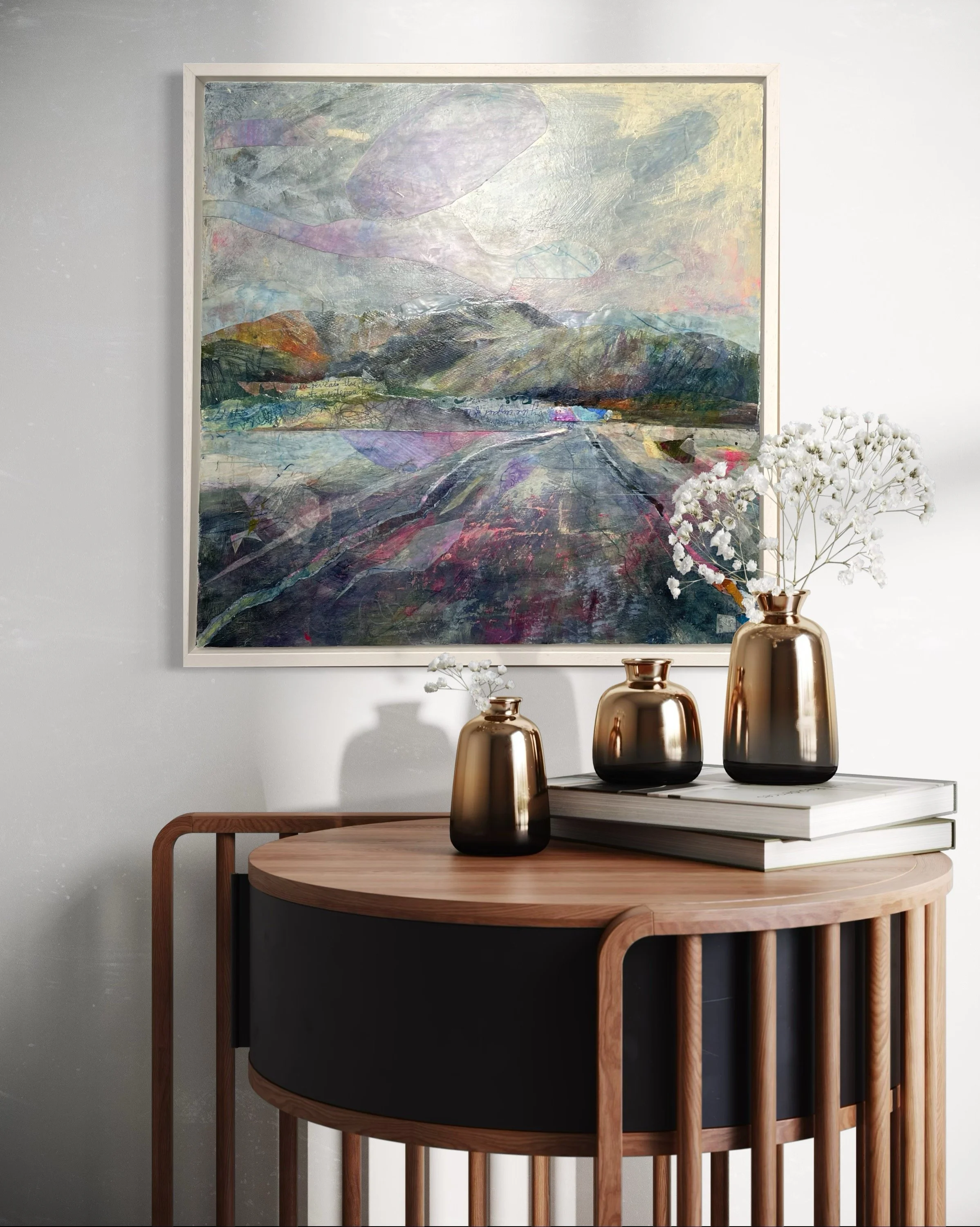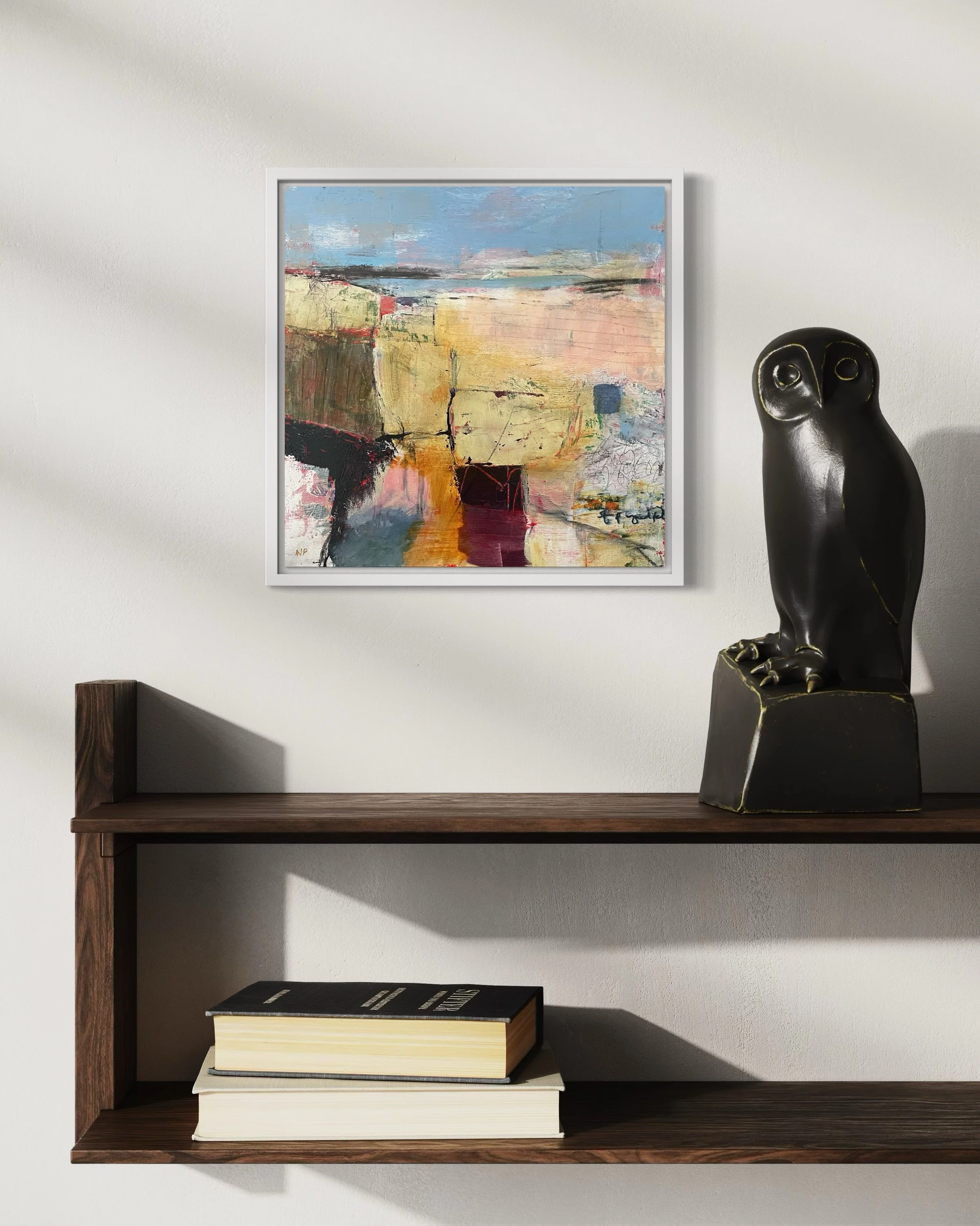 50×50 cm plus white tray frame where indicated. Framing can be arranged if required.